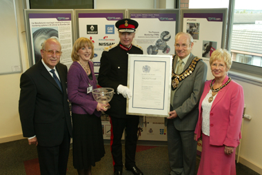 | Bartec Auto ID has been awarded the Queens Award for Enterprise 2005 for International Trade. From left to right – Brian Wolfe, Chairman of Bartec Auto ID, Cheryl Webb, Sales Director of Bartec Auto ID, Lord Lieutenant of South Yorkshire and The Worshipful the Mayor and Lady Mayoress of Barnsley. Formed in 1992, Bartec Auto has succeeded in becoming a world leader in automotive technology having developed a Tyre Pressure Monitoring System (TPMS). The system reads radio frequency tyre pressure sensors and feeds the information to in-car computers, warning drivers of any problems. Bartec’s products have been implemented into the production line and assembly points of car manufacturing plants across the world. Their customer base has grown considerably and now includes some of the biggest companies in the automotive industry including Ford, Nissan, Renault, Jaguar and Land Rover. This is reflected in the company’s export sales, which have risen by 215% over the past three years. This rise in sales has led to the company having a 70% share of the market with both turnover and workforce having doubled. Based at Barnsley Business and Innovation Centre (BBIC), the company also operate in some of the toughest markets in the world including the U.S, Canada, Japan, France and Sweden. New laws in the US making tyre pressure sensors a mandatory requirement on all passenger carrying vehicles have further contributed to Bartec’s success and the company’s largest ever export order book. A presentation event was held at BBIC on Friday 23rd September where The Lord Lieutenant of South Yorkshire formally presented Chairman of Bartec Auto ID, Brian Wolfe and Sales Director, Cheryl Webb with the prestigious Queens Award for Enterprise 2005. The event was also attended by The Worshipful the Mayor and Lady Mayoress of Barnsley. Colin Webb, Managing Director, commented, “The Queen’s Award is in acknowledgement of the tremendous commitment shown by our team to deliver products and customer service of the highest quality to some of the most demanding markets in the world.” Jeff Pickering, Economic Development Manager at BDA, added, “We would like to congratulate Bartec on winning this esteemed award. It is great news that the achievements of a Barnsley company have been recognised in this way and we wish them every success with their future plans and continued growth.” For further details of Bartec Auto ID Ltd contact Colin Webb on 01226 770 581 or e-mail sales@bartecautoid.com. To find out how Barnsley Development Agency can help your business develop please Tel: 01226 784 451. END |
